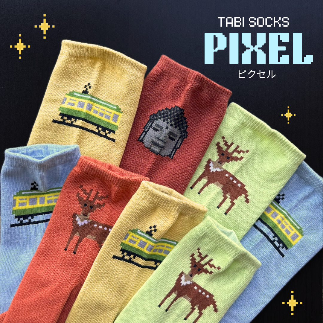 This playful new series features nostalgic pixel-art designs of iconic motifs from Nara and Kamakura—deer(Shika), the Great Buddha(Daibutsu), and local trains(Densha)🦌🚃