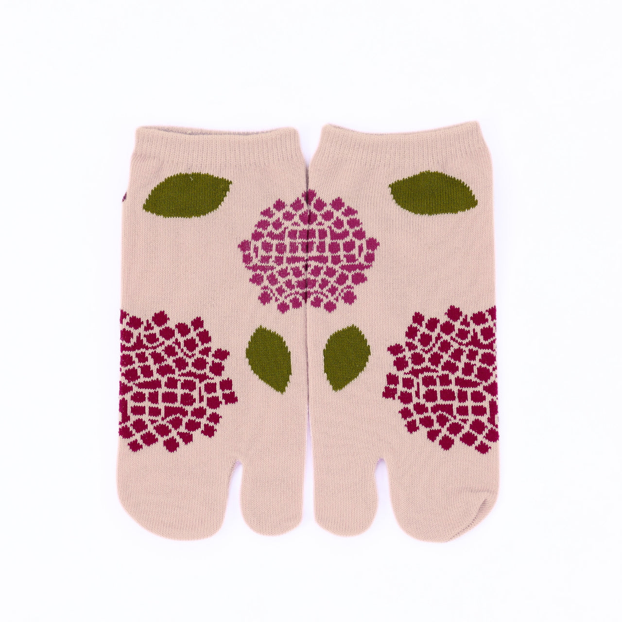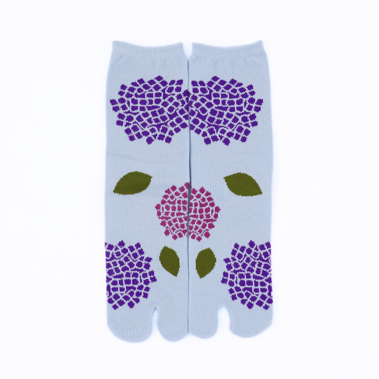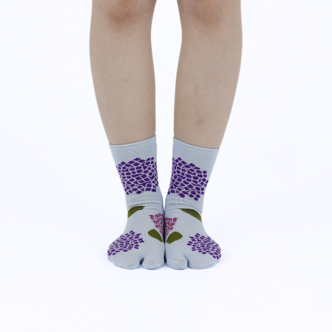 “鎌倉” をテーマにしたオリジナルソックスシリーズ。初夏の日本を彩る「あじさい」をデザインしており、淡い色合いのピンクとブルー、あじさい模様が映えるブラックの3色展開で、クルー丈とスニーカー丈(くるぶし丈)の2種類があります。