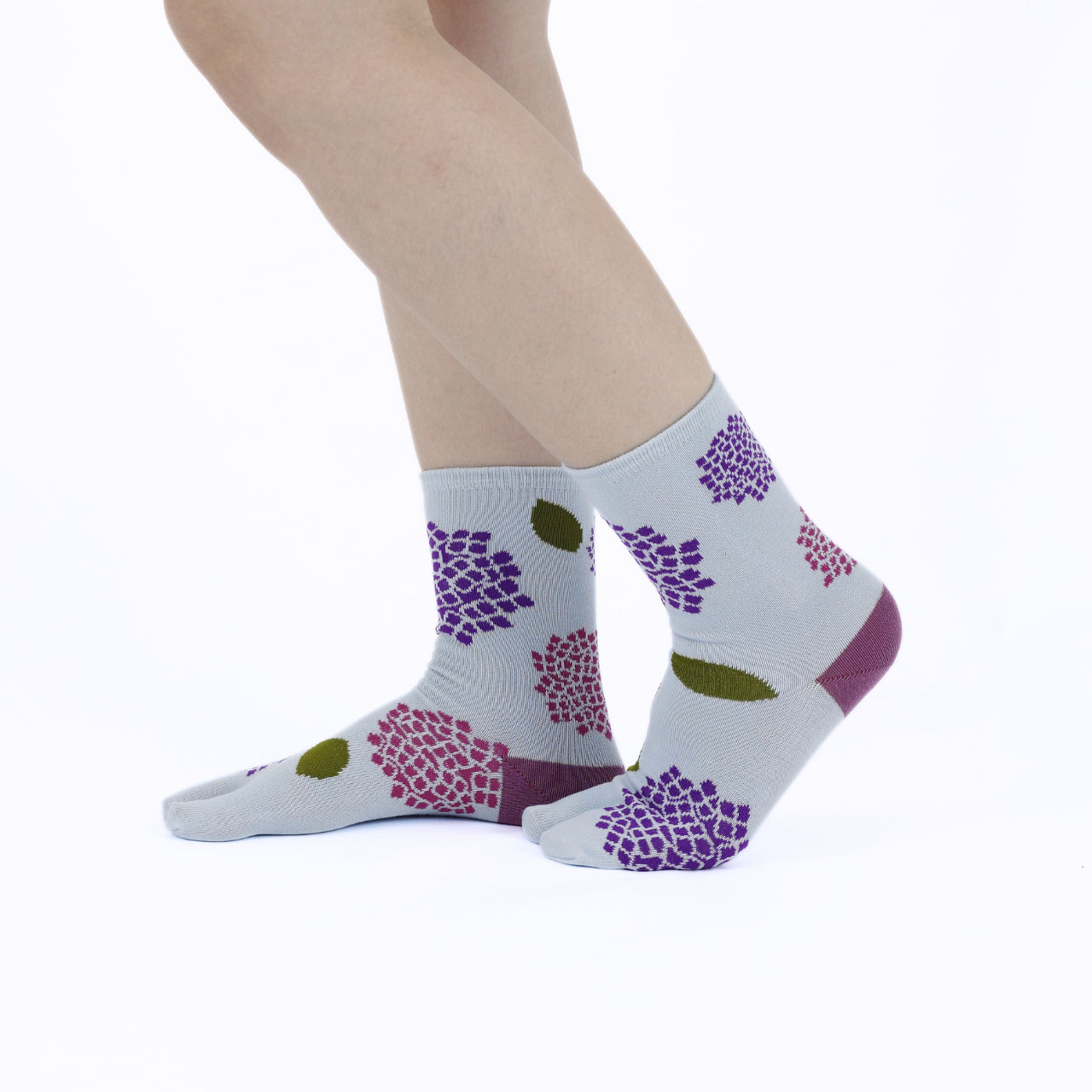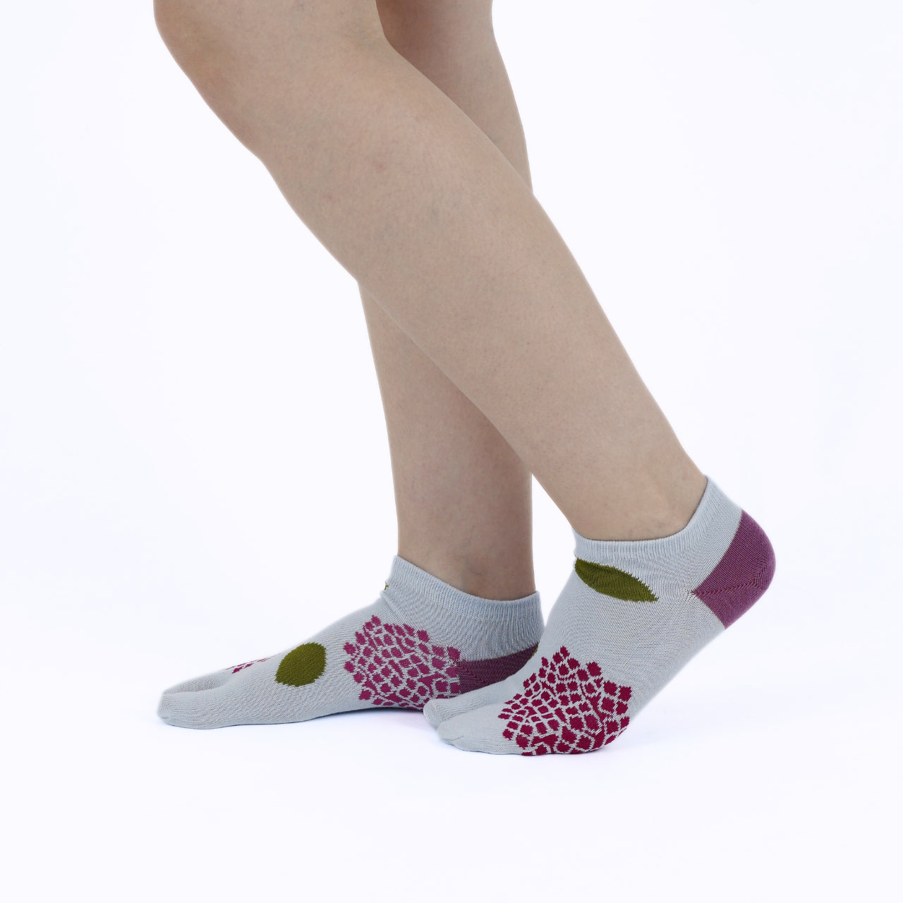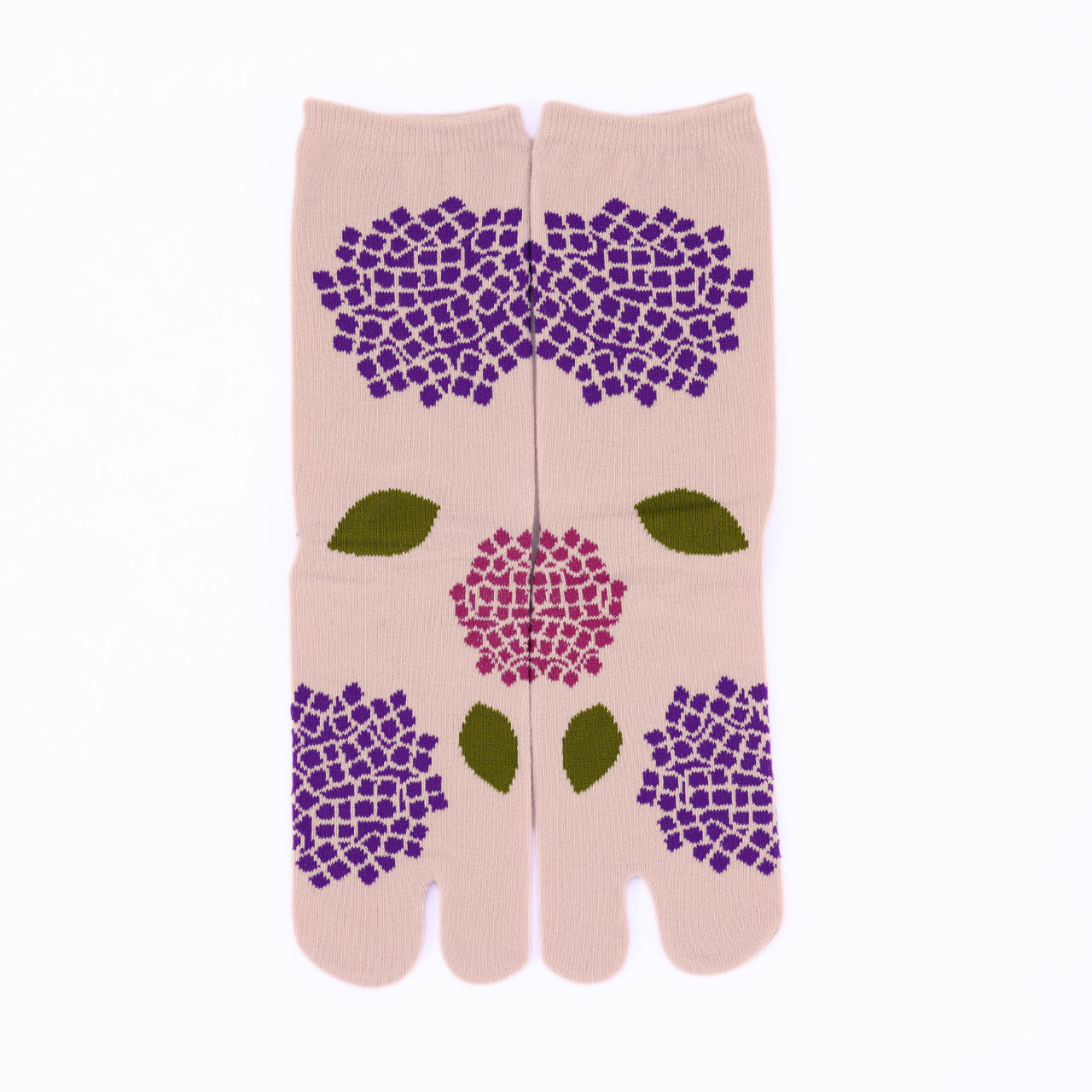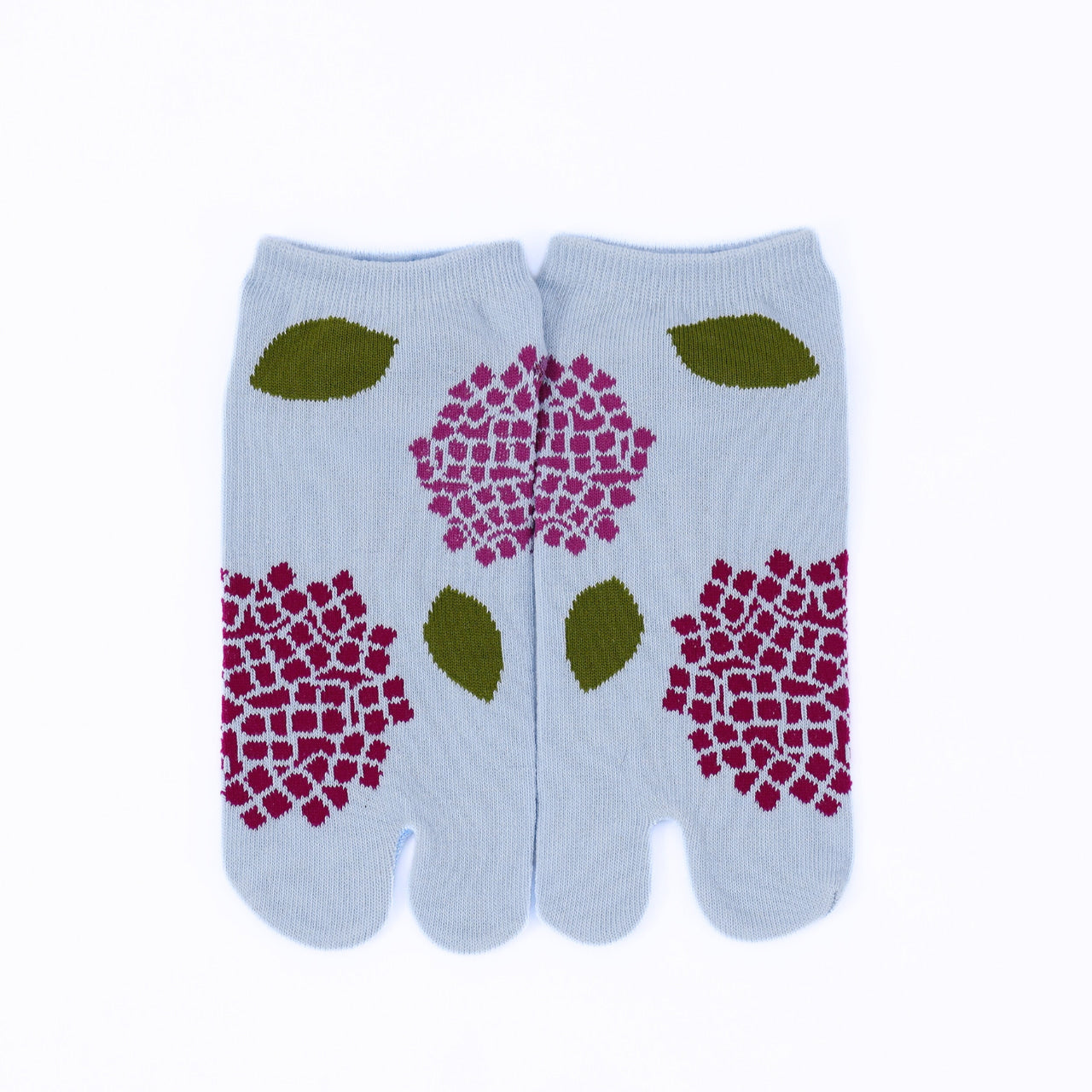 “鎌倉” をテーマにしたオリジナルソックスシリーズ。初夏の日本を彩る「あじさい」をデザインしており、淡い色合いのピンクとブルー、あじさい模様が映えるブラックの3色展開で、クルー丈とスニーカー丈(くるぶし丈)の2種類があります。