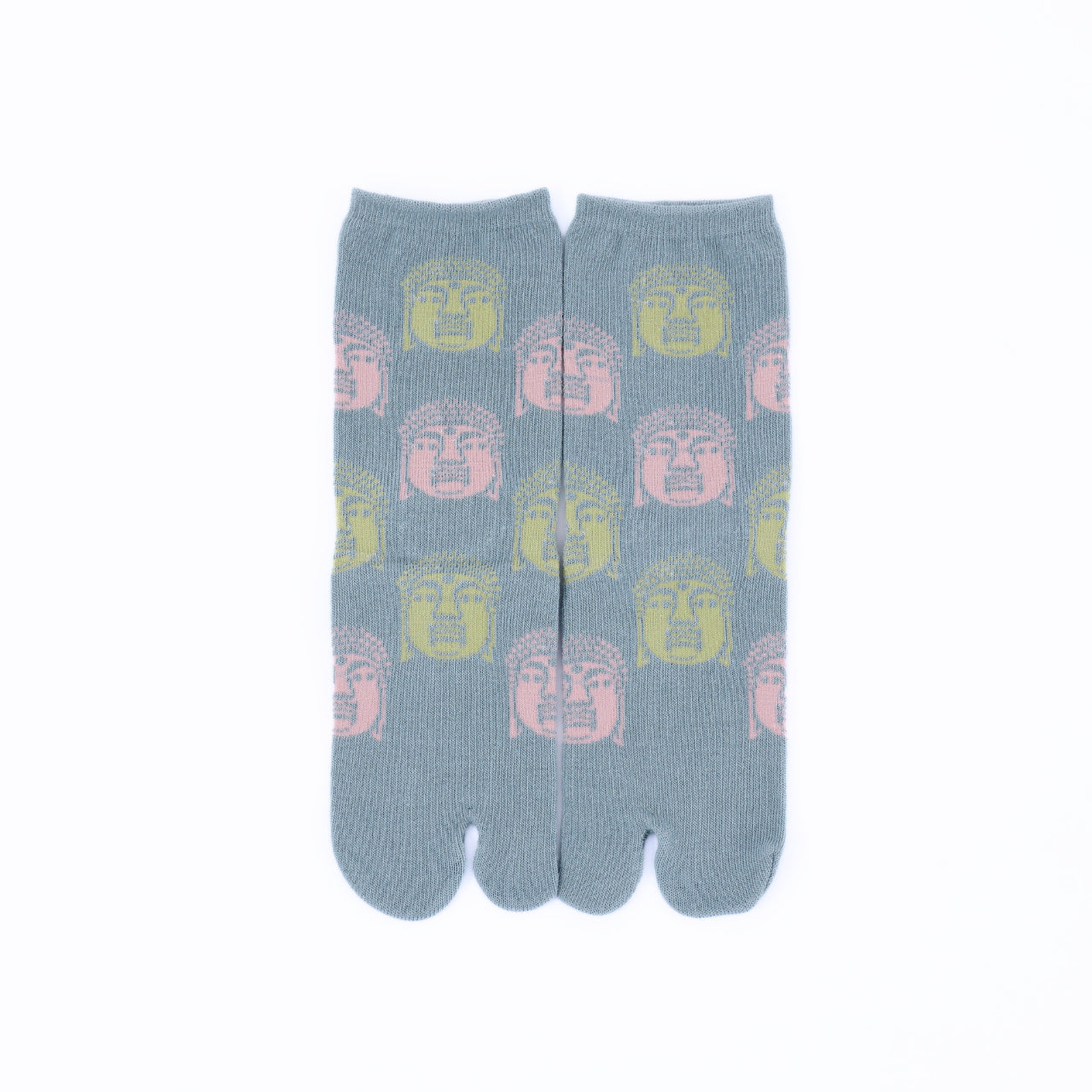 “奈良” をテーマにしたオリジナルソックスシリーズ。奈良好き、大仏好きにはたまらない一足です。くすみカラーのダルブルーもご用意しました。親子でのペアコーデも楽しめるよう、大人サイズもございます。